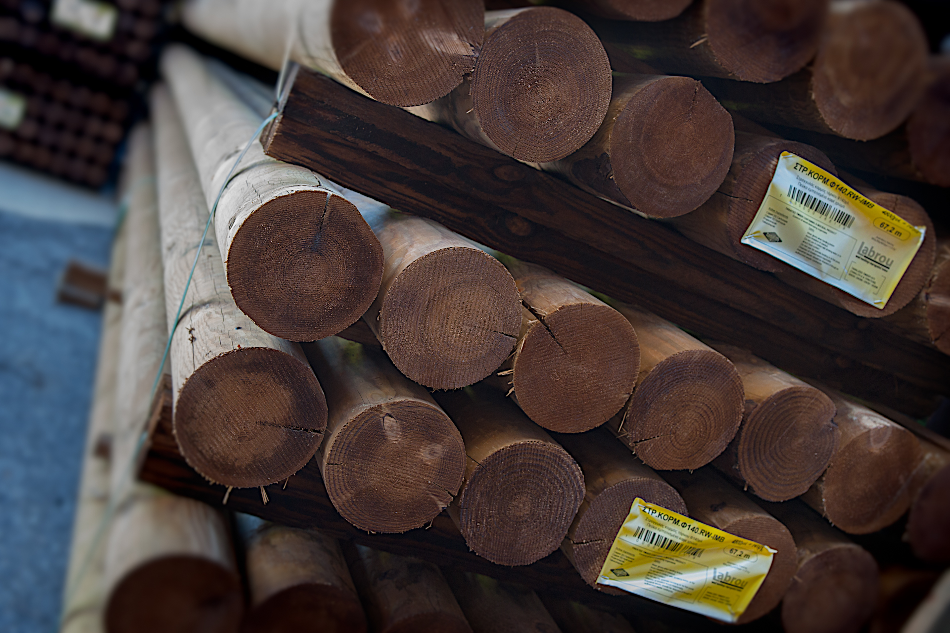 ΣΤΡ.ΚΟΡΜ.Φ140.RW.IMB Στρογγυλός κορμός τόρνου Φ140χιλ. Πεύκο εμποτισμένο καφέ 3000 έως 5000 χιλ.• 32τμχ/παλέτα