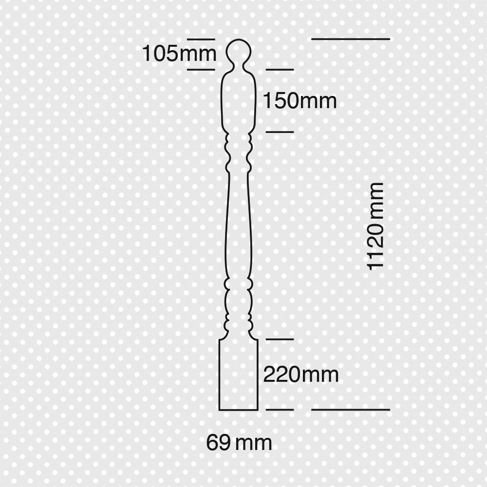 41120.ΔΡ Κολώνα τόρνου 69x69x1120χιλ. Δρύ
